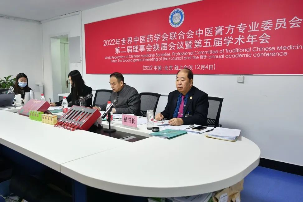 世界中聯(lián)主席馬建中通過(guò)視頻方式致辭,向參加中醫(yī)膏方專(zhuān)業(yè)委員會(huì)第二屆理事會(huì)換屆會(huì)議的線(xiàn)上嘉賓表示歡迎。他講到,近年來(lái),黨和國(guó)家高度重視中醫(yī)藥的發(fā)展,出臺(tái)了一系列支持政策,黨的二十大報(bào)告再次強(qiáng)調(diào)“促進(jìn)中醫(yī)藥創(chuàng)新傳承發(fā)展”,這些都為中醫(yī)藥事業(yè)發(fā)展提供了堅(jiān)強(qiáng)保障。世界中聯(lián)是全球最大的中醫(yī)藥國(guó)際學(xué)術(shù)組織,在中醫(yī)藥深入?yún)⑴c全球治理中持續(xù)發(fā)揮著重要作用。在中醫(yī)藥深入?yún)⑴c全球治理中持續(xù)發(fā)揮著重要作用。膏方是中醫(yī)養(yǎng)生文化的精髓,在進(jìn)補(bǔ)方面有深厚的臨床經(jīng)驗(yàn),膏方即可治療慢性疾病又可滋補(bǔ)大病過(guò)后的虛弱病體,是兼顧治療和補(bǔ)虛雙重作用的良劑。中醫(yī)膏方專(zhuān)業(yè)委員會(huì)在董瑞會(huì)長(zhǎng)帶領(lǐng)下,在組織學(xué)術(shù)會(huì)議和開(kāi)展國(guó)際交流、抗擊疫情、科研創(chuàng)新、醫(yī)療幫扶等方面做了大量工作,促進(jìn)了中醫(yī)膏方走向世界,關(guān)注民間中醫(yī)藥瑰寶的挖掘整理,通過(guò)政協(xié)提案促進(jìn)民間膏方傳承及其制作工藝的搶救,為保護(hù)民間膏方獻(xiàn)技出力,開(kāi)展科研課題與臨床實(shí)踐提高藥方、膏方的臨床療效,踐行“療效是中醫(yī)藥生命線(xiàn)”的真理,發(fā)出倡議鼓勵(lì)理事們積極投入抗疫,第一屆理事會(huì)工作取得了突出成績(jī),榮獲了世界中聯(lián)頒發(fā)的“抗擊疫情榮譽(yù)集體”稱(chēng)號(hào)和2020-2021年度先進(jìn)分支機(jī)構(gòu)三等獎(jiǎng)。希望新一屆理事會(huì)在董瑞會(huì)長(zhǎng)領(lǐng)導(dǎo)下,能夠充分發(fā)揮世界中聯(lián)平臺(tái)優(yōu)勢(shì),繼續(xù)辦好“一帶一路”雁棲湖中醫(yī)膏方國(guó)際高峰論壇,加快膏方相關(guān)標(biāo)準(zhǔn)起草,促進(jìn)膏方產(chǎn)品和市場(chǎng)開(kāi)發(fā),加強(qiáng)國(guó)際交流交往,助力中醫(yī)藥走向世界。