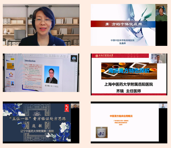 開(kāi)幕式結(jié)束后,大會(huì)開(kāi)展了線(xiàn)上學(xué)術(shù)報(bào)告和學(xué)術(shù)交流活動(dòng)。董瑞會(huì)長(zhǎng)做了《中醫(yī)膏方概論》的學(xué)術(shù)報(bào)告;北京中醫(yī)藥大學(xué)蘇慧萍教授、中國(guó)中醫(yī)科學(xué)院西苑醫(yī)院張燕萍教授、港澳臺(tái)中醫(yī)醫(yī)師聯(lián)合促進(jìn)會(huì)總會(huì)會(huì)長(zhǎng)盧致鵬教授、上海中醫(yī)藥大學(xué)岳陽(yáng)中西醫(yī)結(jié)合醫(yī)院齊瑞教授、遼寧中醫(yī)藥大學(xué)附屬第二醫(yī)院龐敏教授、廣西中醫(yī)藥大學(xué)第一附屬醫(yī)院賓博平教授六位中醫(yī)膏方專(zhuān)業(yè)委員會(huì)副會(huì)長(zhǎng)分別作了《膏方防治慢阻肺的組方用藥特點(diǎn)》《膏方的個(gè)體化應(yīng)用》《脾胃系統(tǒng)(慢性胃炎疾?。┑闹形麽t(yī)論述臨床觀察與證型研究》《海派膏方的特點(diǎn)》《膏方臨床應(yīng)用思路》《中醫(yī)膏方臨床概論》的學(xué)術(shù)報(bào)告,并與在線(xiàn)專(zhuān)家學(xué)者進(jìn)行了互動(dòng)交流。中醫(yī)膏方專(zhuān)業(yè)委員會(huì)第二屆理事會(huì)換屆會(huì)議暨第五屆學(xué)術(shù)年會(huì)取得了圓滿(mǎn)成功。