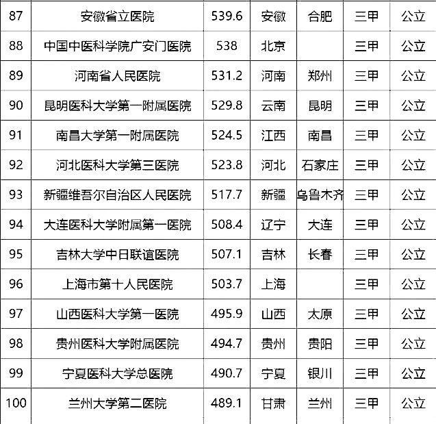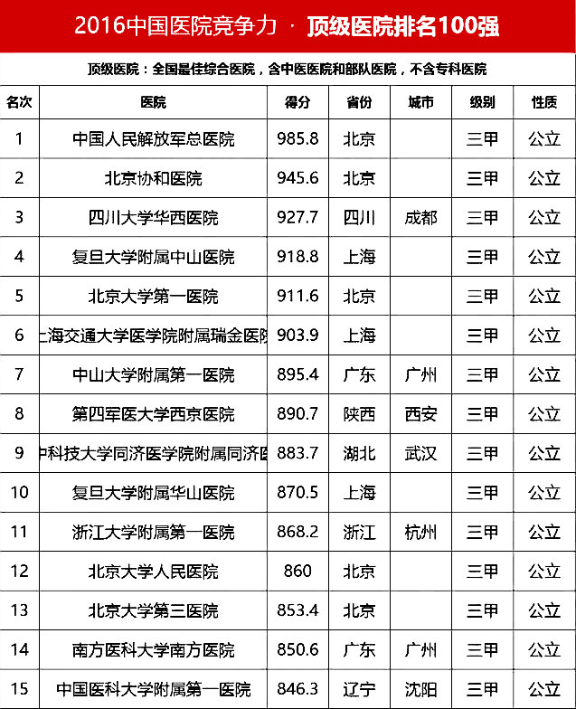 “頂級醫(yī)院100強”采用的排名指標體系包括四個方面:醫(yī)院最優(yōu)規(guī)模(實開床位數(shù)、年門急診量、年出院量、全院人數(shù));醫(yī)療技術(正高職稱人數(shù)/全院人數(shù)、全院醫(yī)師人數(shù)/實開床位數(shù)、醫(yī)療設備資產(chǎn)/總資產(chǎn)、年住院手術量/年出院量、國家級衛(wèi)紀委臨床重點???總專科書、ICU床占比);醫(yī)院運行(平均住院天數(shù)、床位使用率、門診均次費用/當?shù)厝司鵊DP、住院均次費用/當?shù)厝司鵊DP、外省住院病人占比);學術影響力(院士人數(shù)、學術領袖占比、教育部重點學科及重點實驗室/總??茢?shù)、本年度獲國家自然科學基金項目數(shù)量和總全額)。